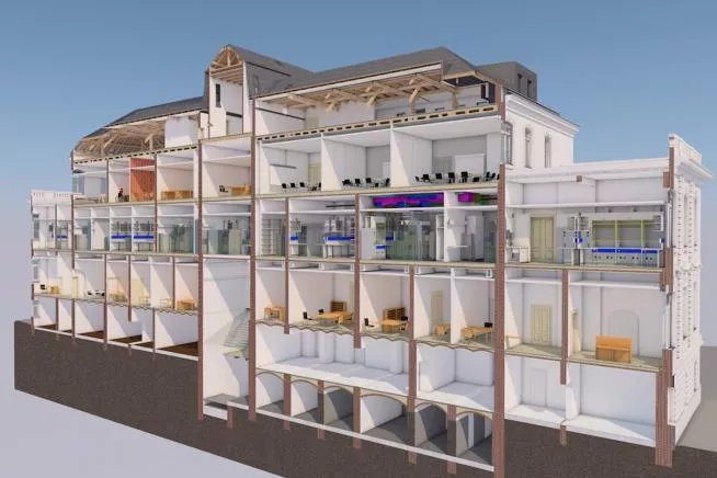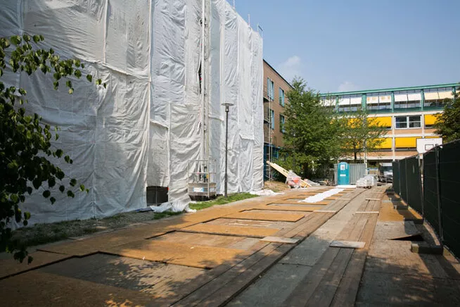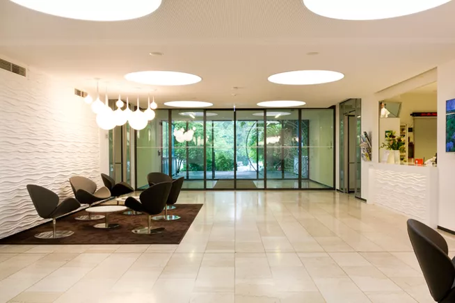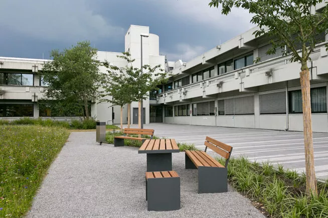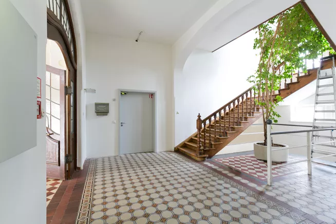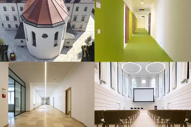 Auch bei der Generalsanierung denkmalgeschützter Gebäude berücksichtigen wir konsequent ökologische Aspekte. Für das St. Vinzenz Haus wurde bereits vor der Ausschreibung eine detaillierte Ökobilanz verschiedener Bodenbeläge erstellt. Auf Grundlage der Lebenszyklusanalyse und der Toxizitätsbewertung wurde der Bodenbelag mit den geringsten Umweltauswirkungen ausgewählt.